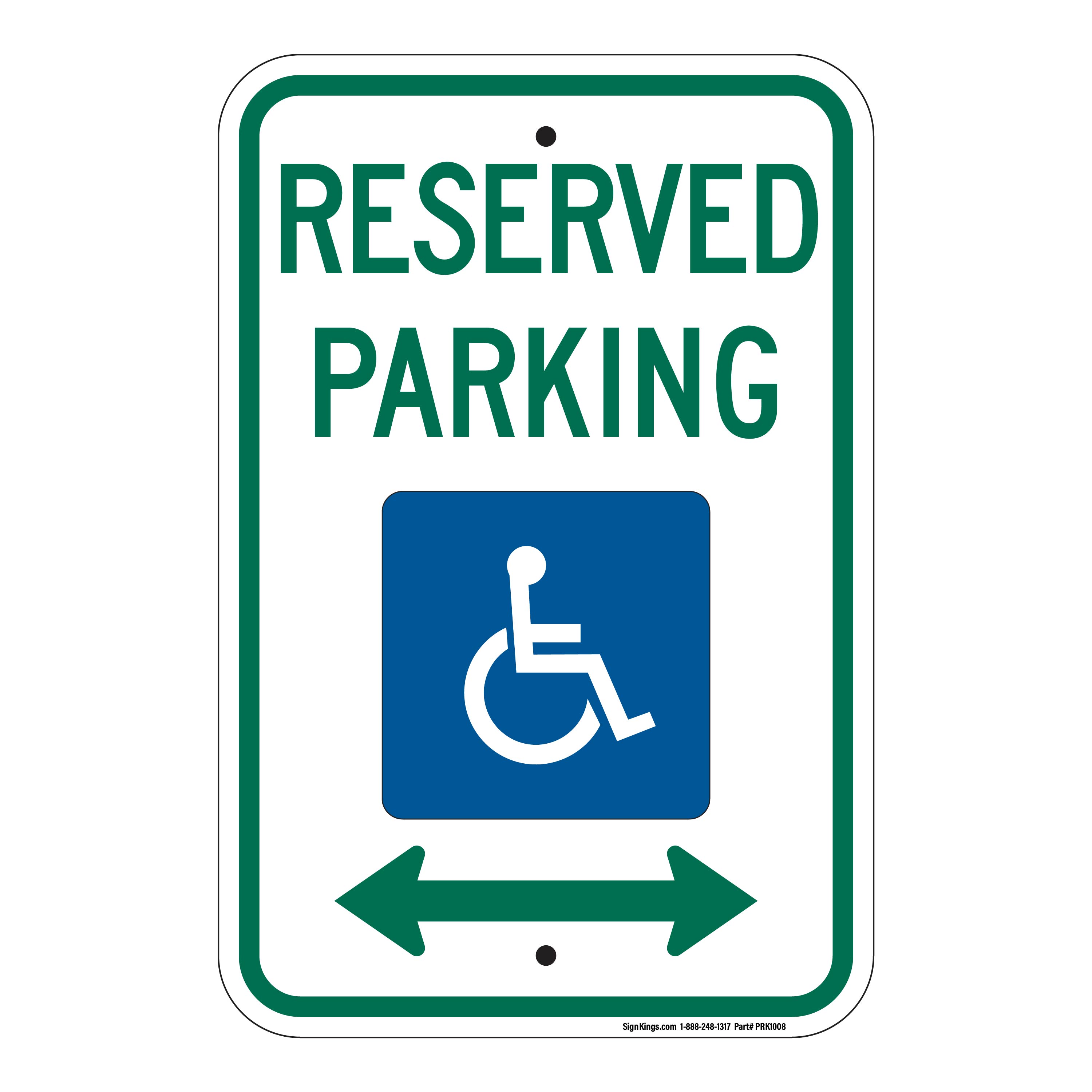 Display parking rules with our highly visible “Reserved Parking Handicap (Double Arrow) With Symbol” sign.