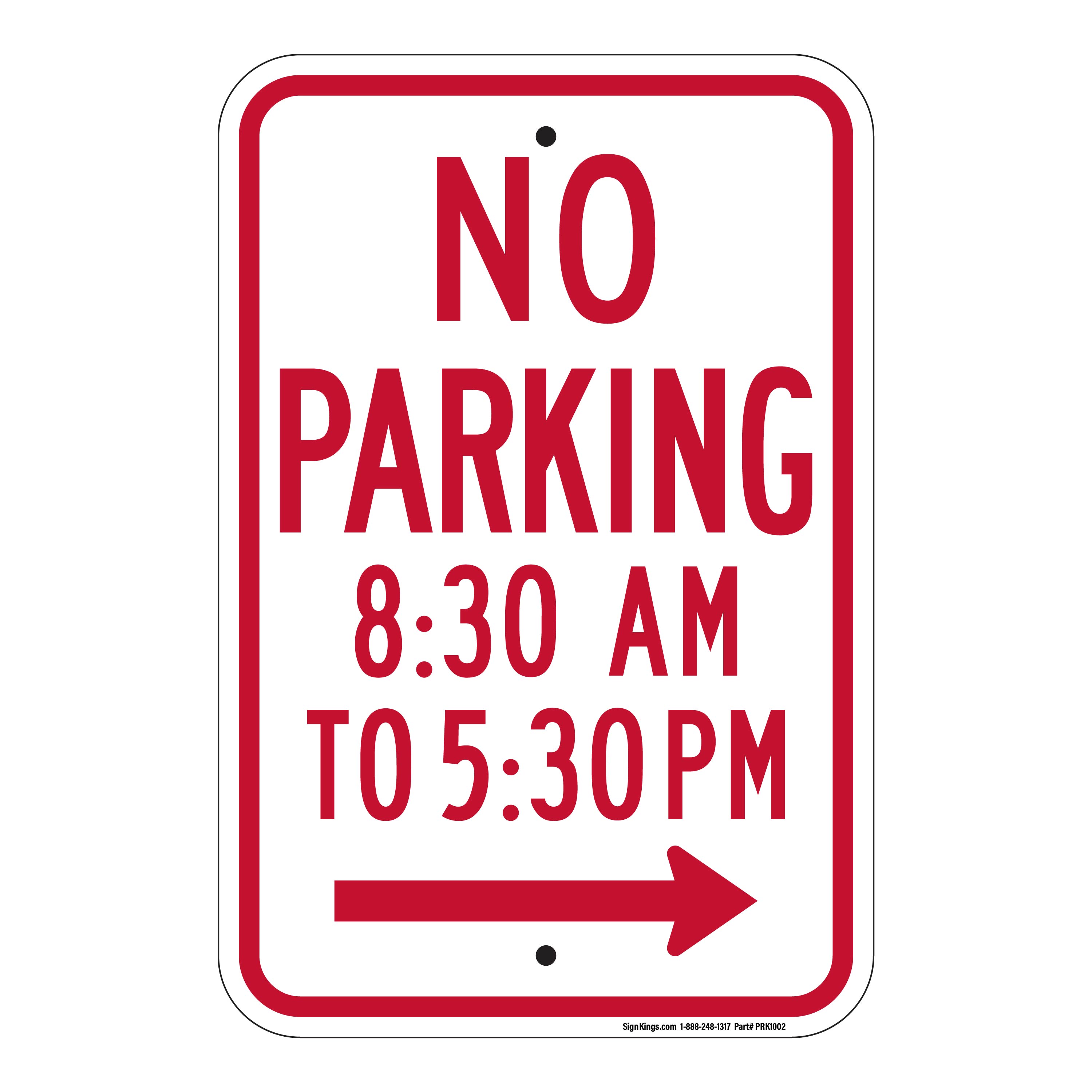 Display parking rules with our highly visible “No Parking 8:30am to 5:30pm (Arrow Right)” sign.