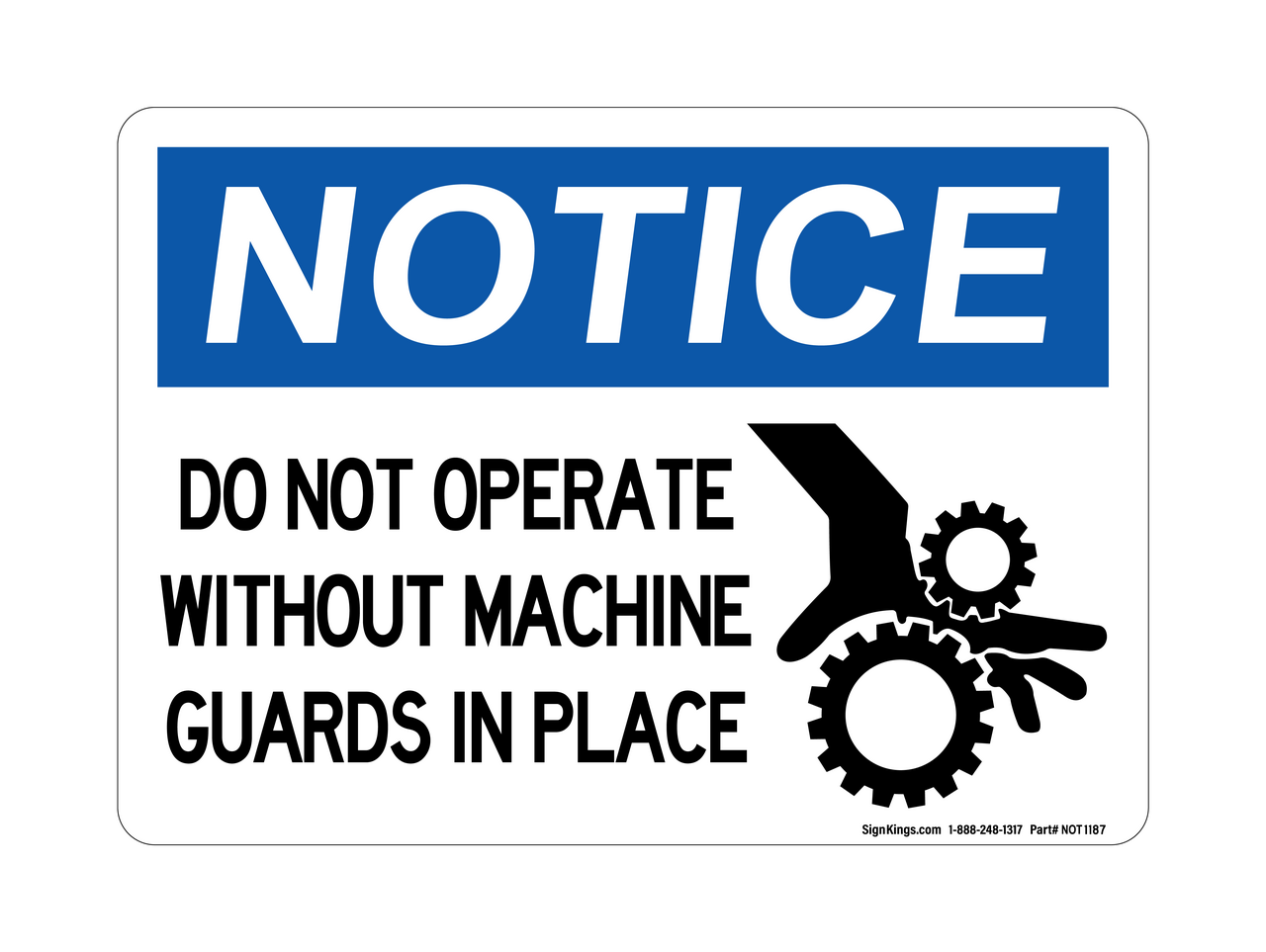 "Do Not Operate Without Machine Guards in Place (With Hand In Gears Symbol" Notice Sign (Part#: NOT1187)