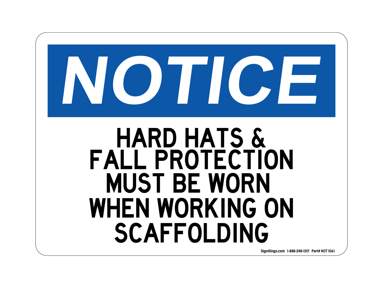 Notice Signs: Hard Hat & Fall Protection Must Be Worn When Working On Scaffolding