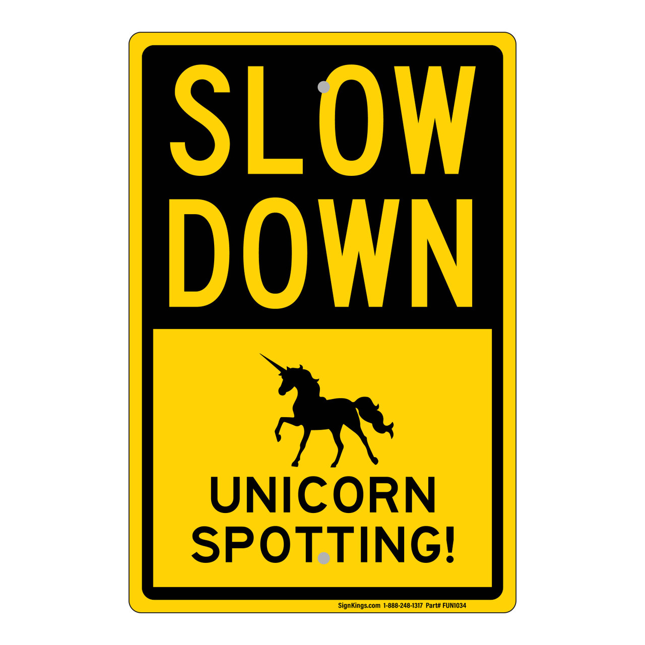 Slow Down Unicorn Spotting sign Traffic Control Signs, Reflective, 7"x 10" to 24" x 36" Part# - FUN1034