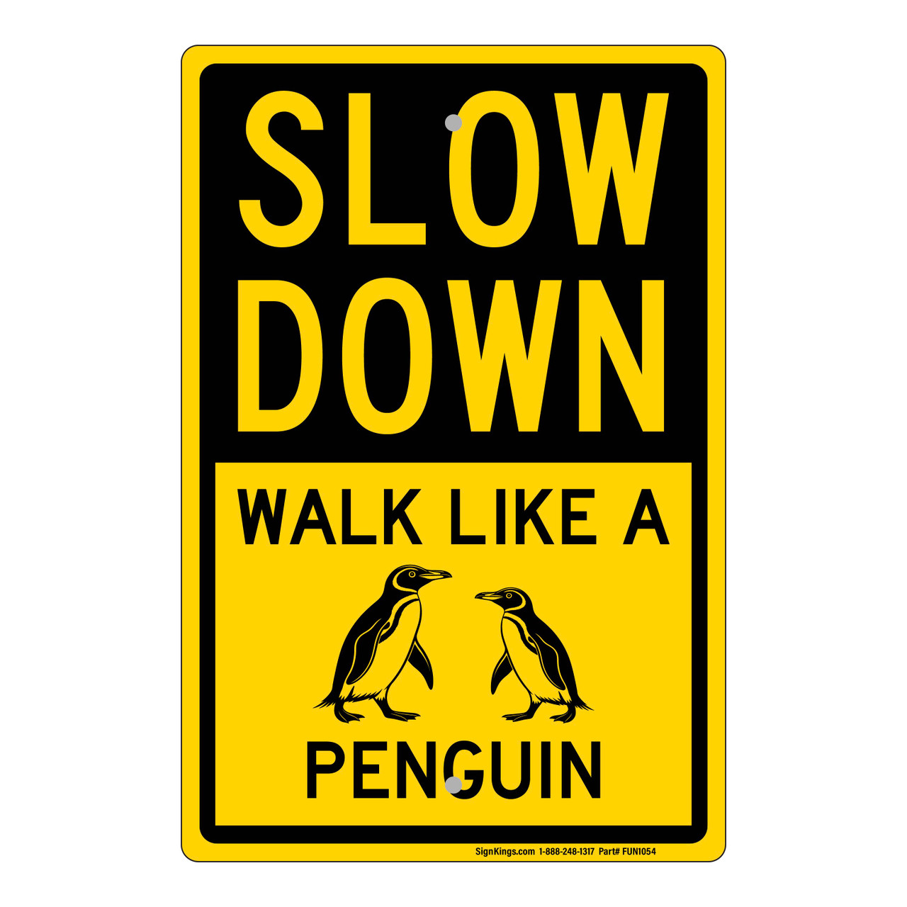 Slow Down Walk Like A Penguin sign Traffic Control Signs, Reflective, 7"x 10" to 24" x 36" Part# - FUN1054