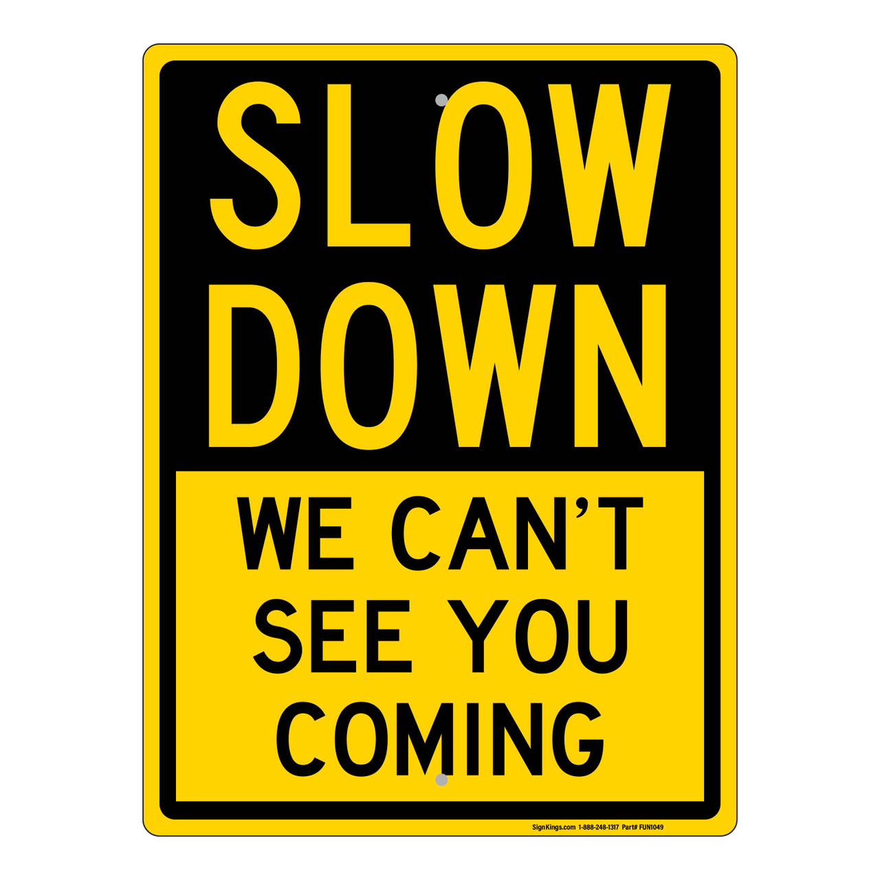 Slow Down We Can't See you Coming sign Traffic Control Signs, Reflective, 7"x 10" to 24" x 36" Part# - FUN1049