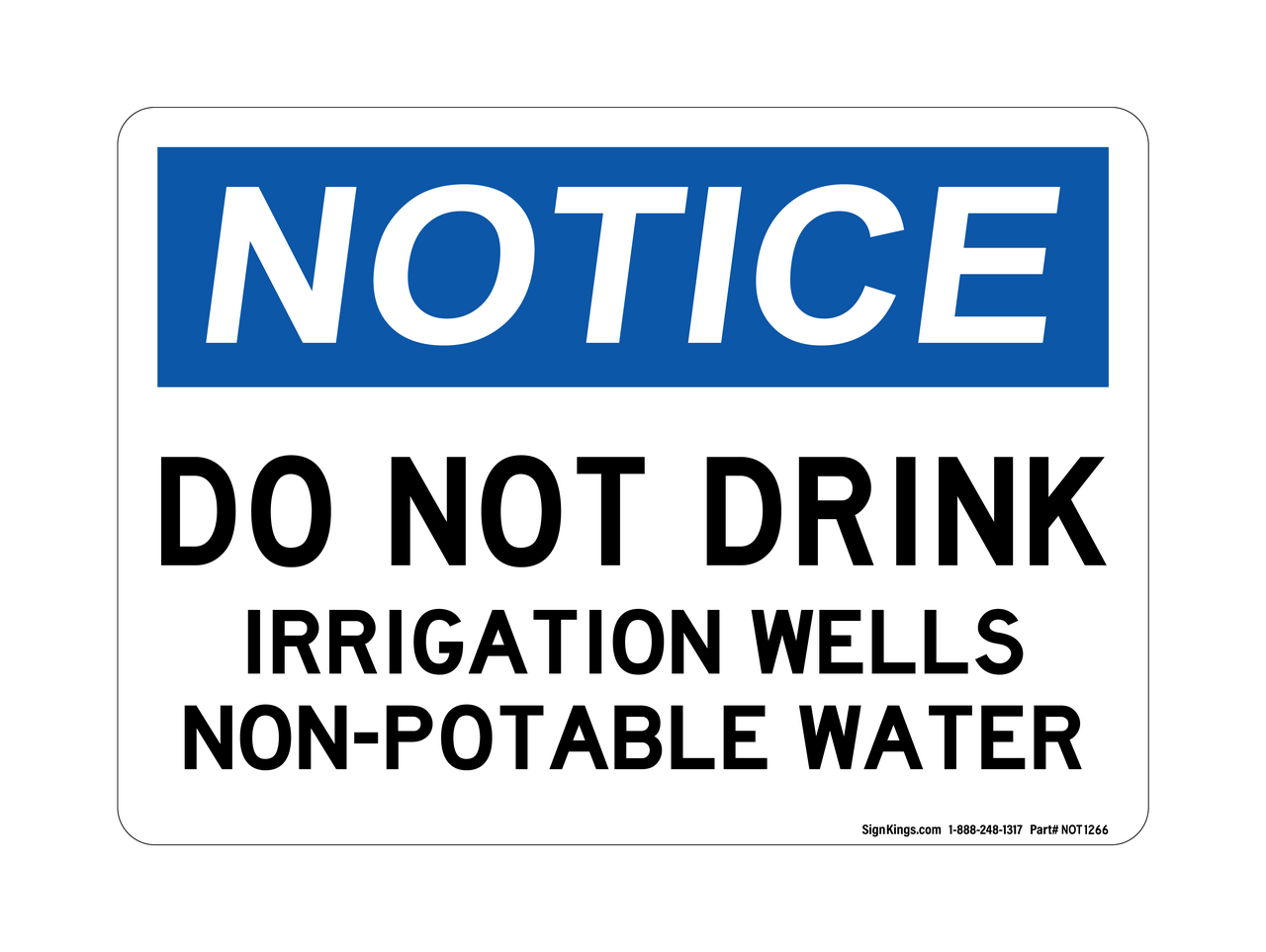 Notice Signs: Do Not Drink Irrigation Well Non Portable Water, (No Water Symbol)