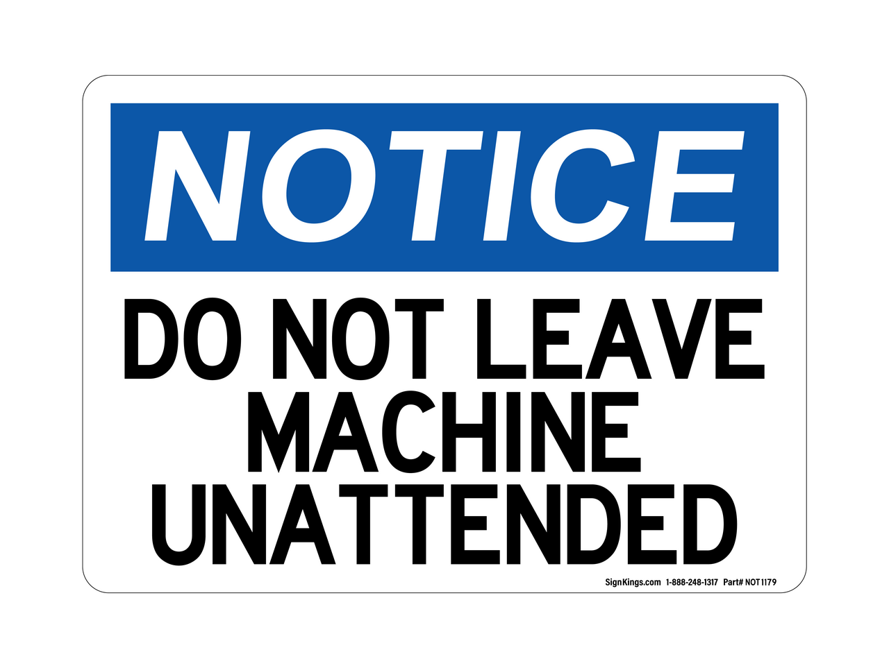 "Do Not Leave Machine Unattended" Notice Sign (Part#: NOT1179)