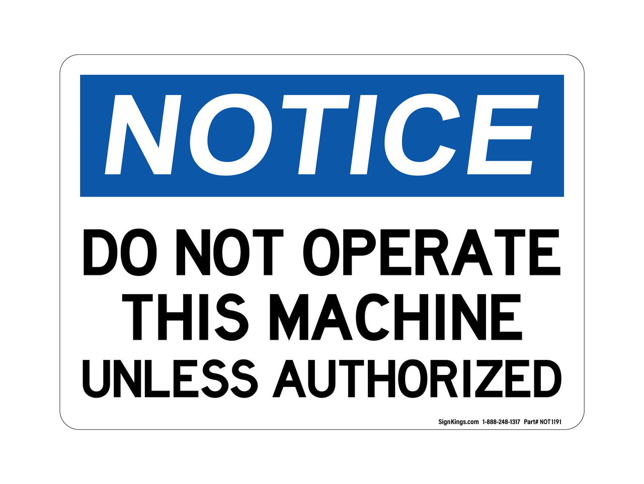 "Do Not Operate This Machine Unless Authorized" Notice Sign (Part#: NOT1191)