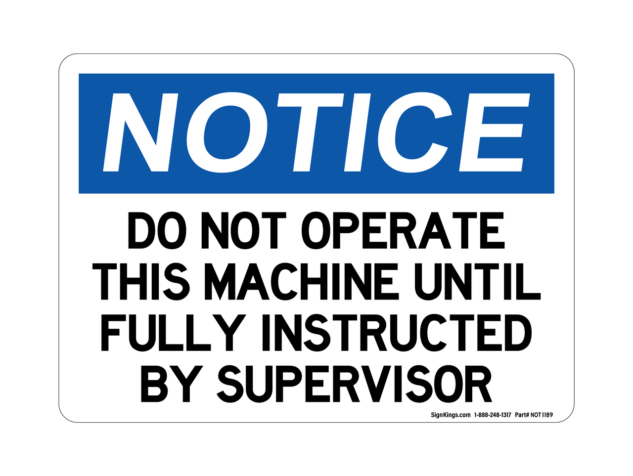 "Do Not Operate This Machine Until Fully Instructed by a Supervisor" Notice Sign (Part#: NOT1189)