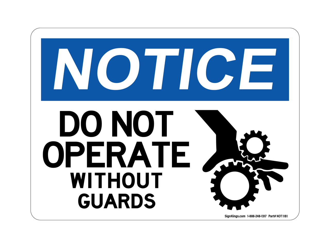 "Do Not Operate Without Guards (With Hand In Gears Symbol)" Notice Sign (Part#: NOT1181)