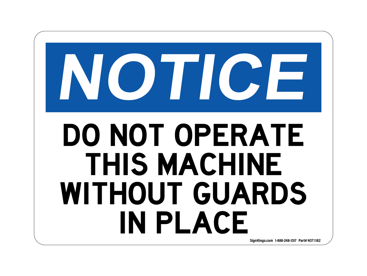 "Do Not Operate Without Guards In Place" Notice Sign (Part#: NOT1182)