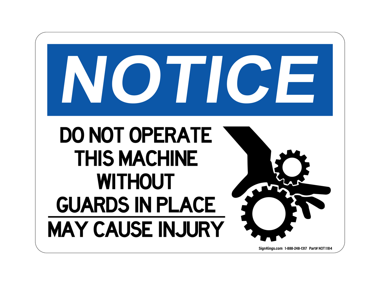 "Do Not Operate Without Guards In Place May Cause Injury (With Hand In Gears Symbol)" Notice Sign (Part#: NOT1184)