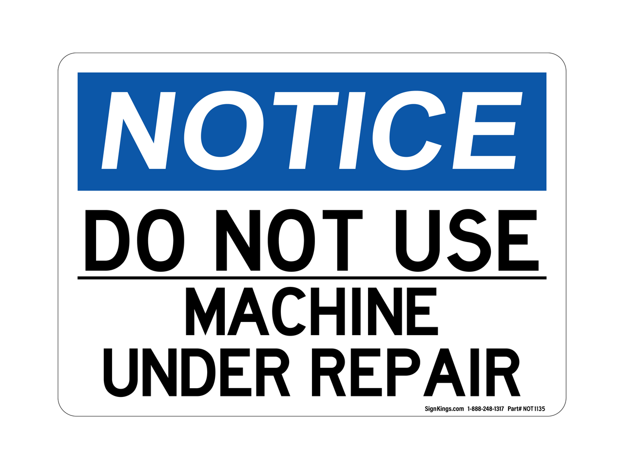 "Do Not Use Machine Under Repair" Notice Sign (Part#: NOT135)