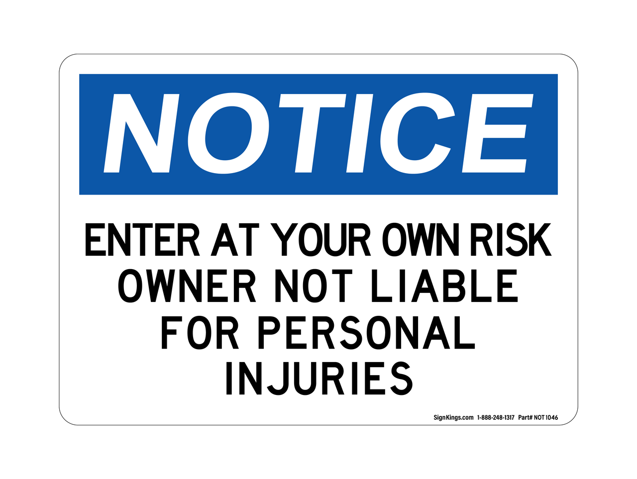"Enter At your Own Risk, Owner Not Liable" Notice Sign (Part#: NOT1046)