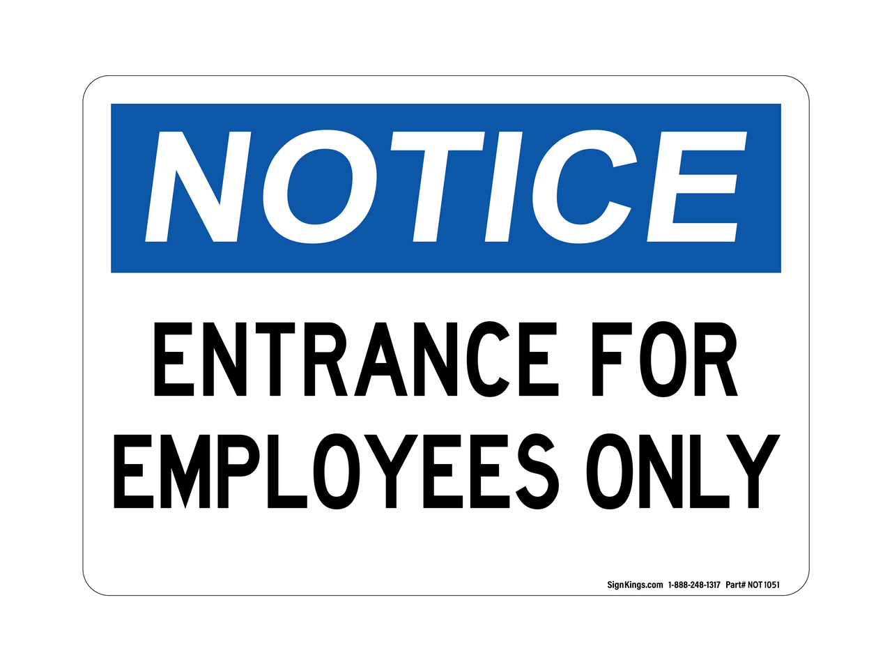 "Entrance For Employees Only" Notice Sign (Part#: NOT1051)