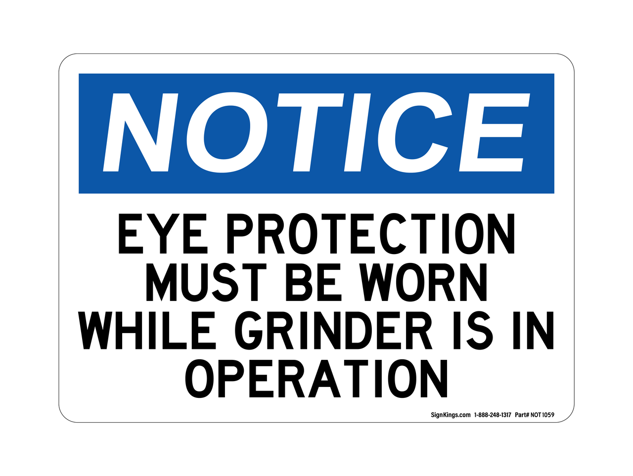 Notice Signs: Eye Protection Must Be Worn When Grinding is In Operation