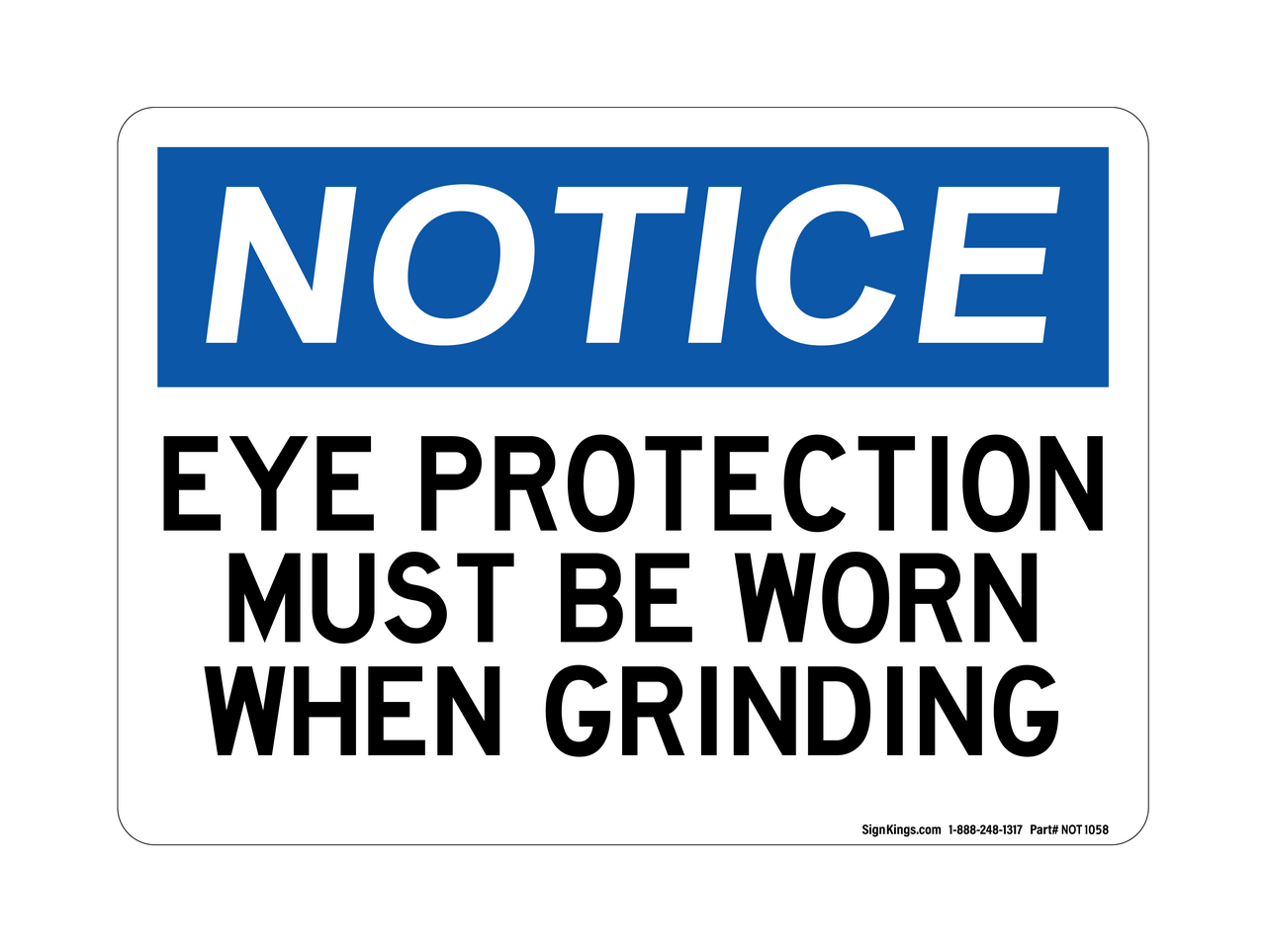 Notice Signs: Eye Protection Must Be Worn When Grinding