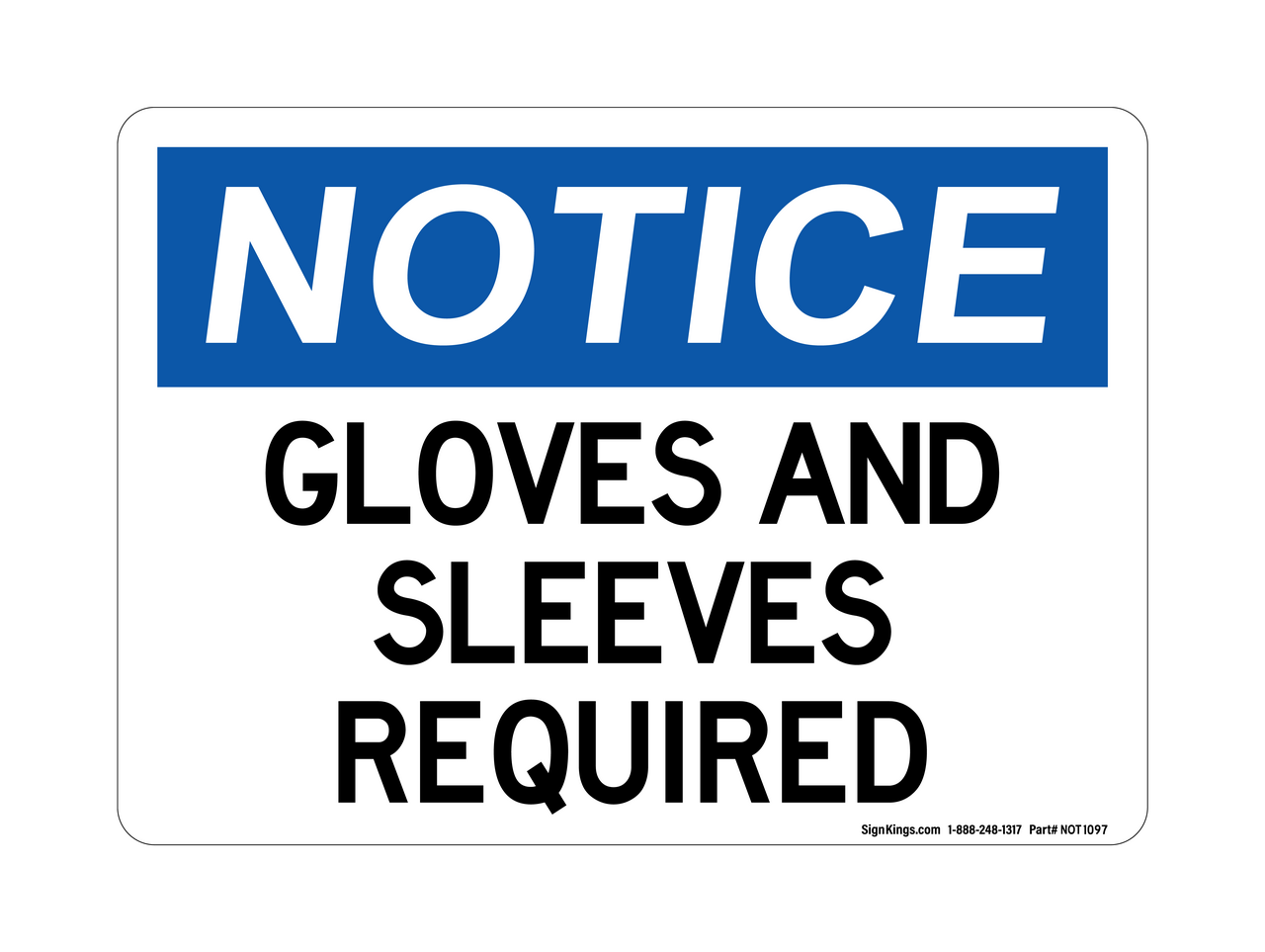 Keep your property, guests and staff safe with our highly visible “Gloves & Sleeves Required” sign. Place these signs where there is risk of injury or damage from unauthorized handling of an object or area.