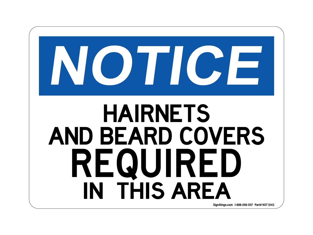 "Hairnets, Beard Covers Required In This Area" Notice Sign (Part#: NOT1043)