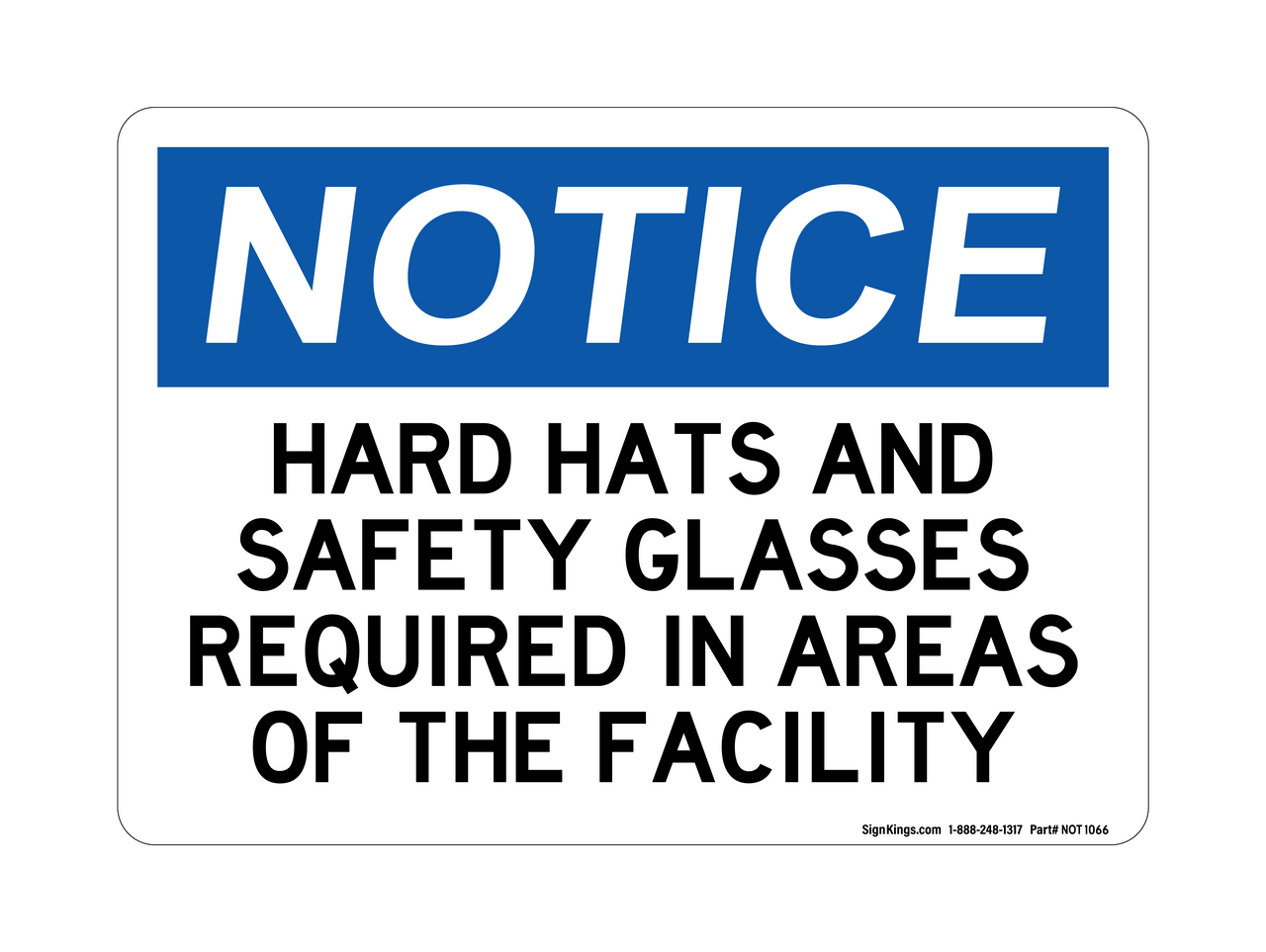 "Hard Hats and Safety Glasses Required in Areas of The Facility" Notice Sign (Part#: NOT1066)