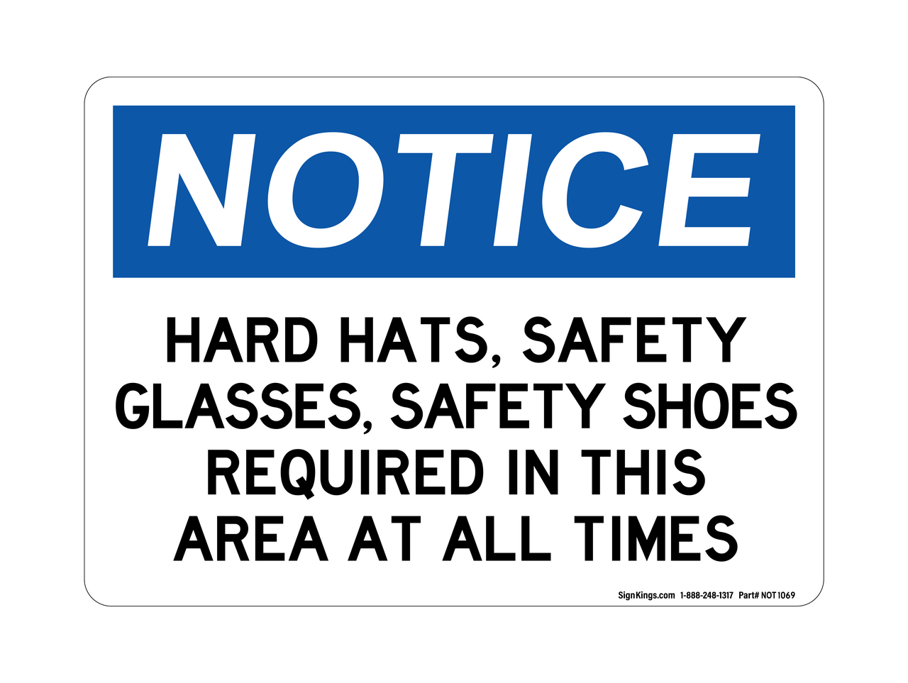 Notice Signs: Hard Hats, Safety Glasses, Safety Shoes, Required In This Area At All Times