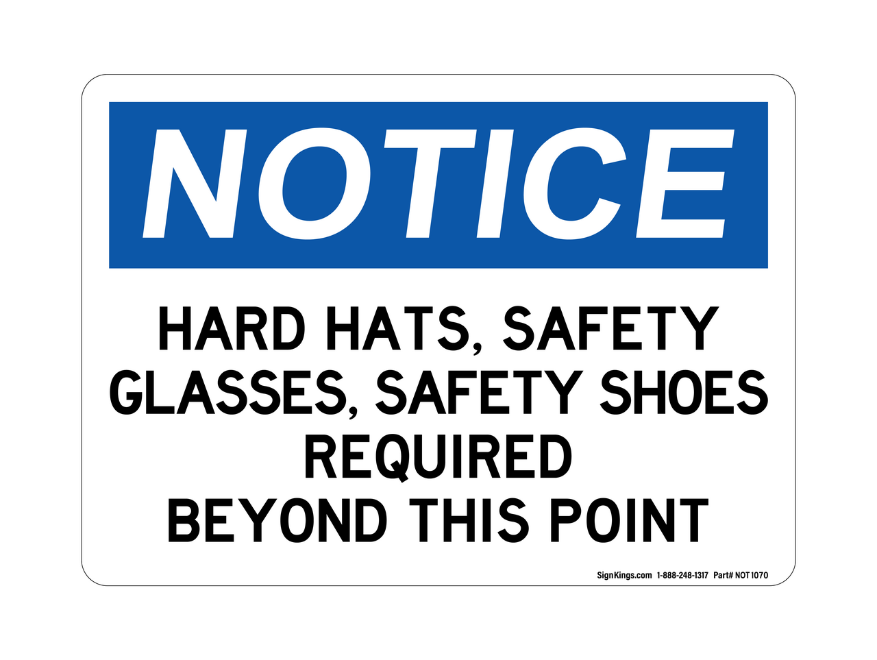 Notice signs: Hard Hats, Safety Glasses, Safety Shoes, Required In This Area At All Times