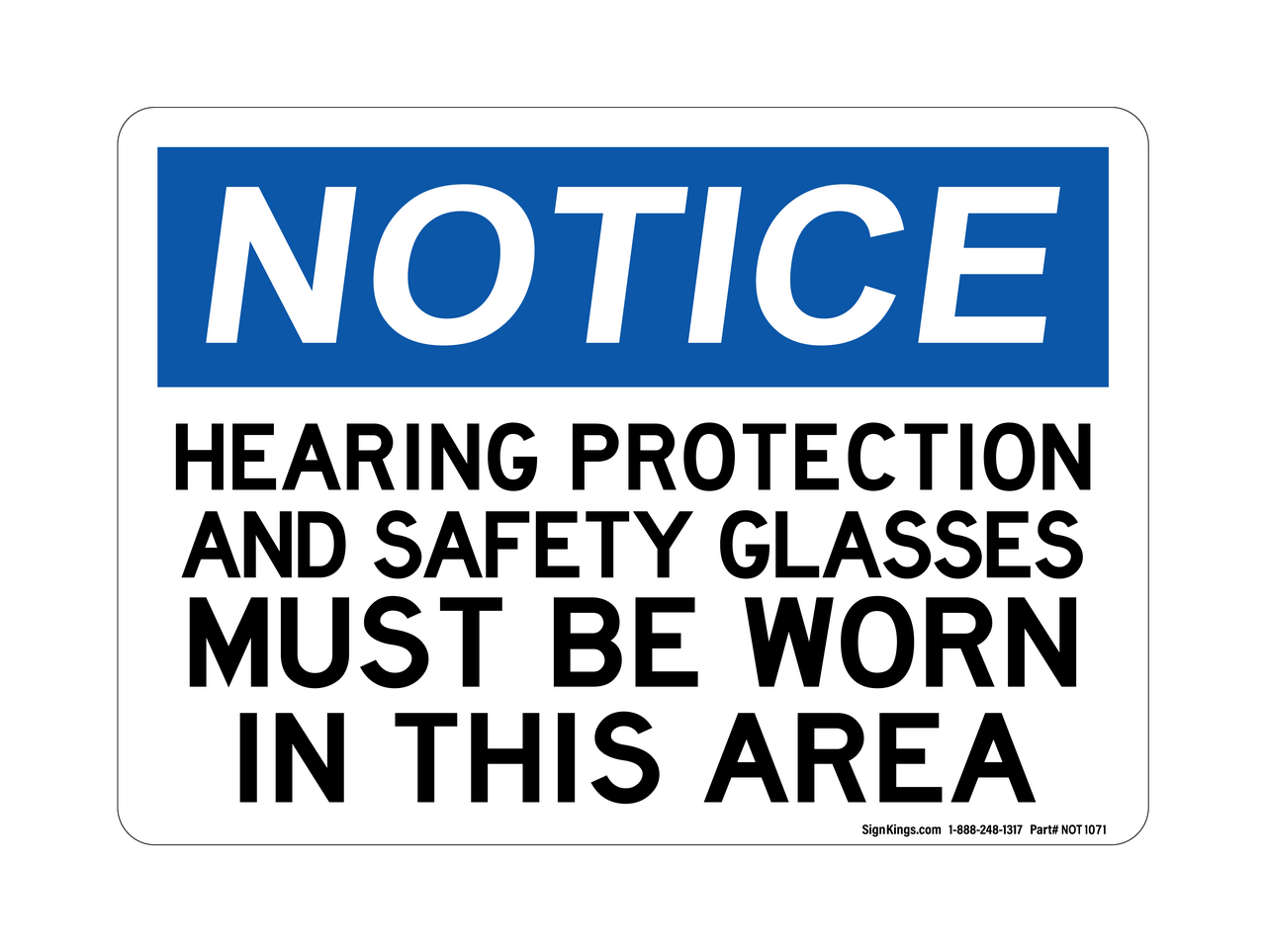 "Hard Protection and Safety Glasses MUST BE WORN IN THIS AREA" Notice Sign (Part#: NOT1071)