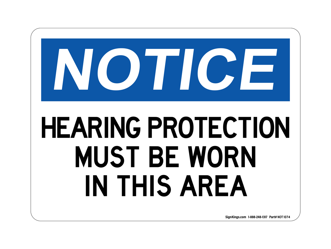 Notice Signs: Hearing Protection Must Be Worn In This Area