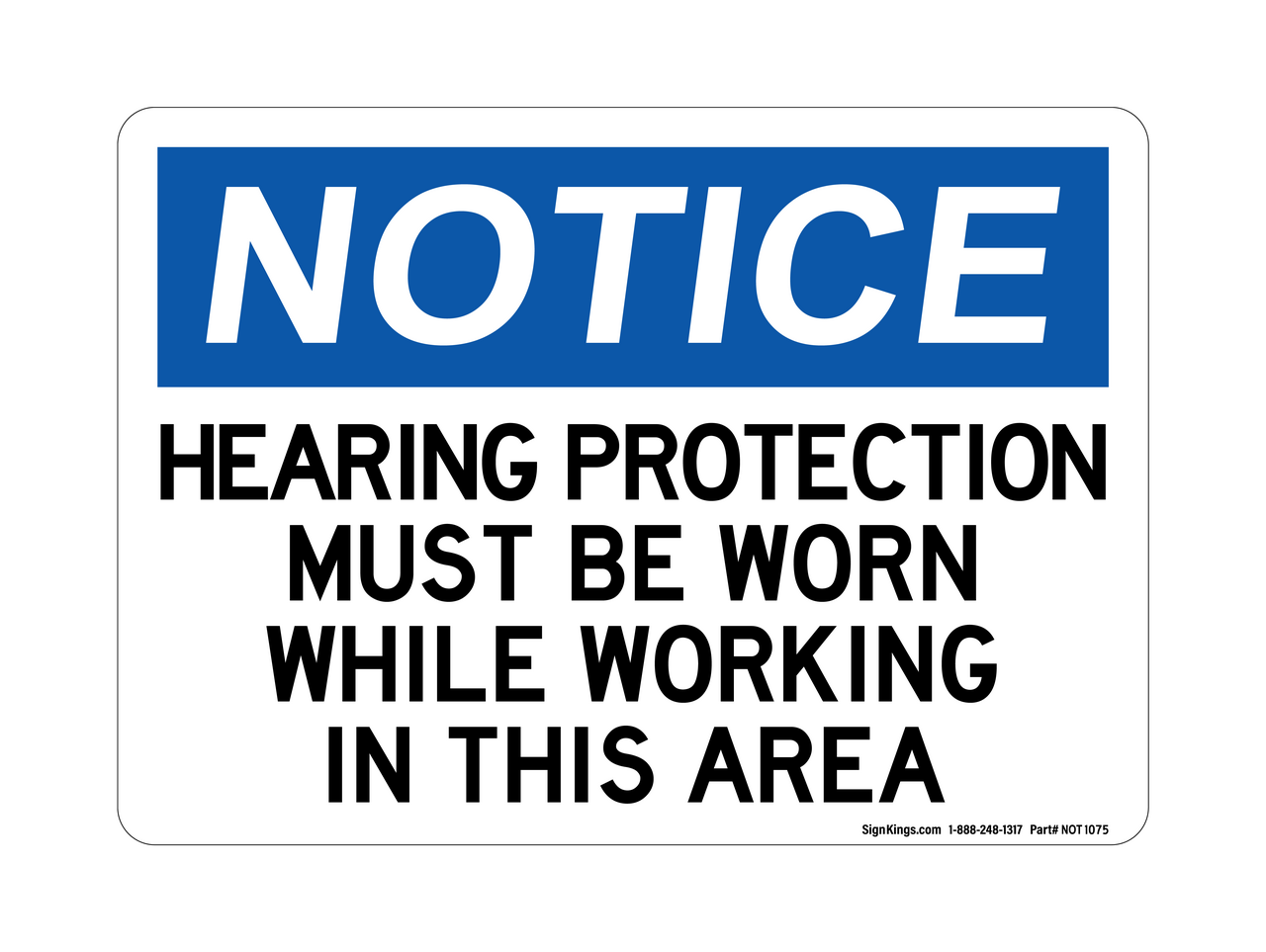 Notice Signs: Hearing Protection Must be Worn While Working In This Area
