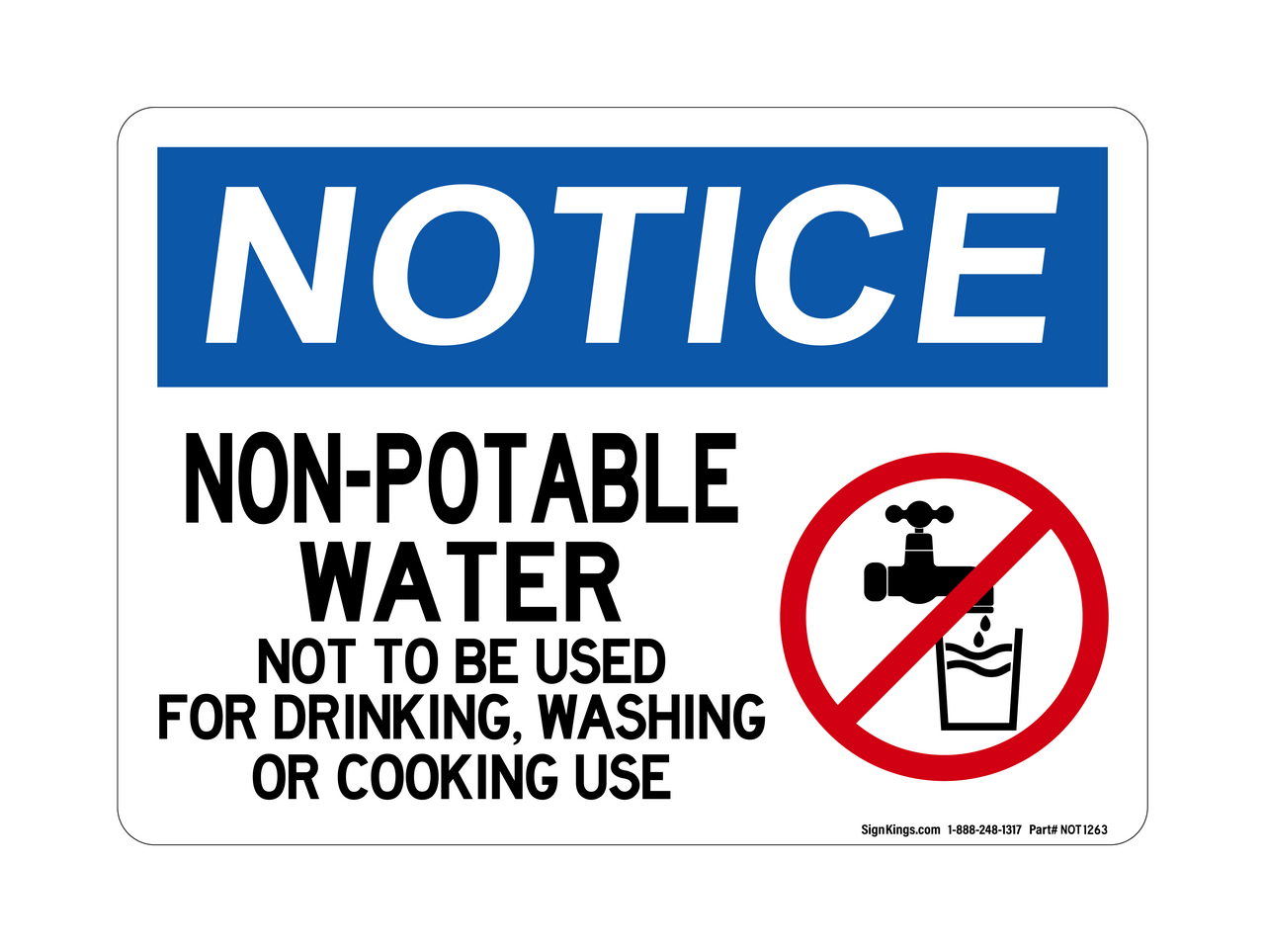 "Non-Potable Water Not To Be Used For Drinking, Washing, Or Cooking, (No Water Symbol)" Notice Sign (Part#: NOT1163)