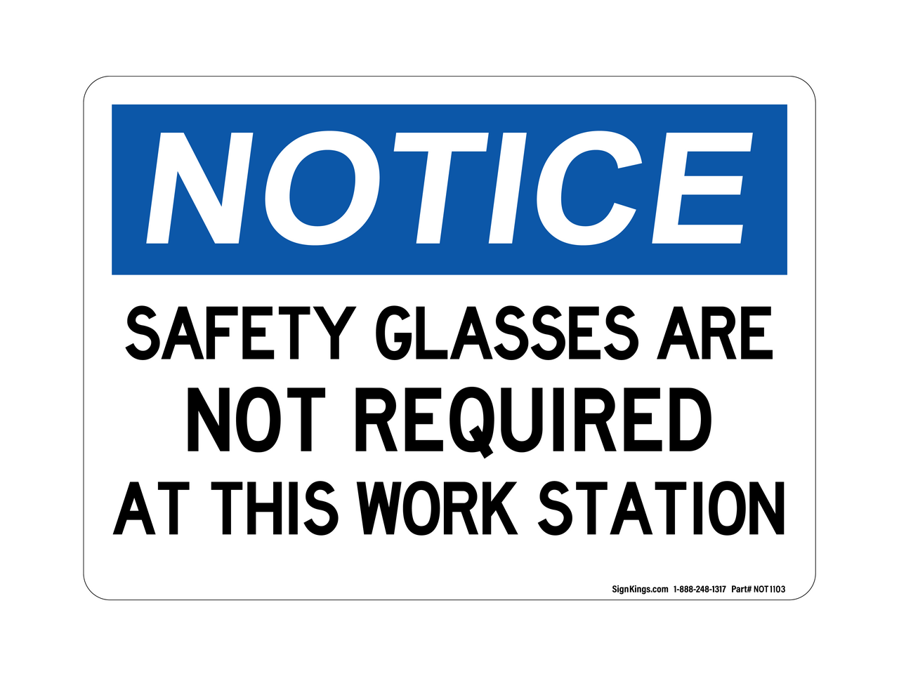 Notice Signs: Safety Glasses Are NOT Required at this Work Station