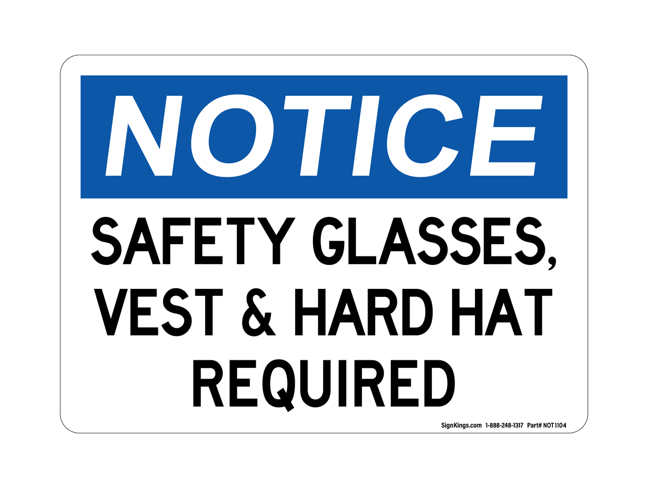 "Safety Glasses, Vest & Hard Hat are Required" Notice Sign (Part#: NOT1104)