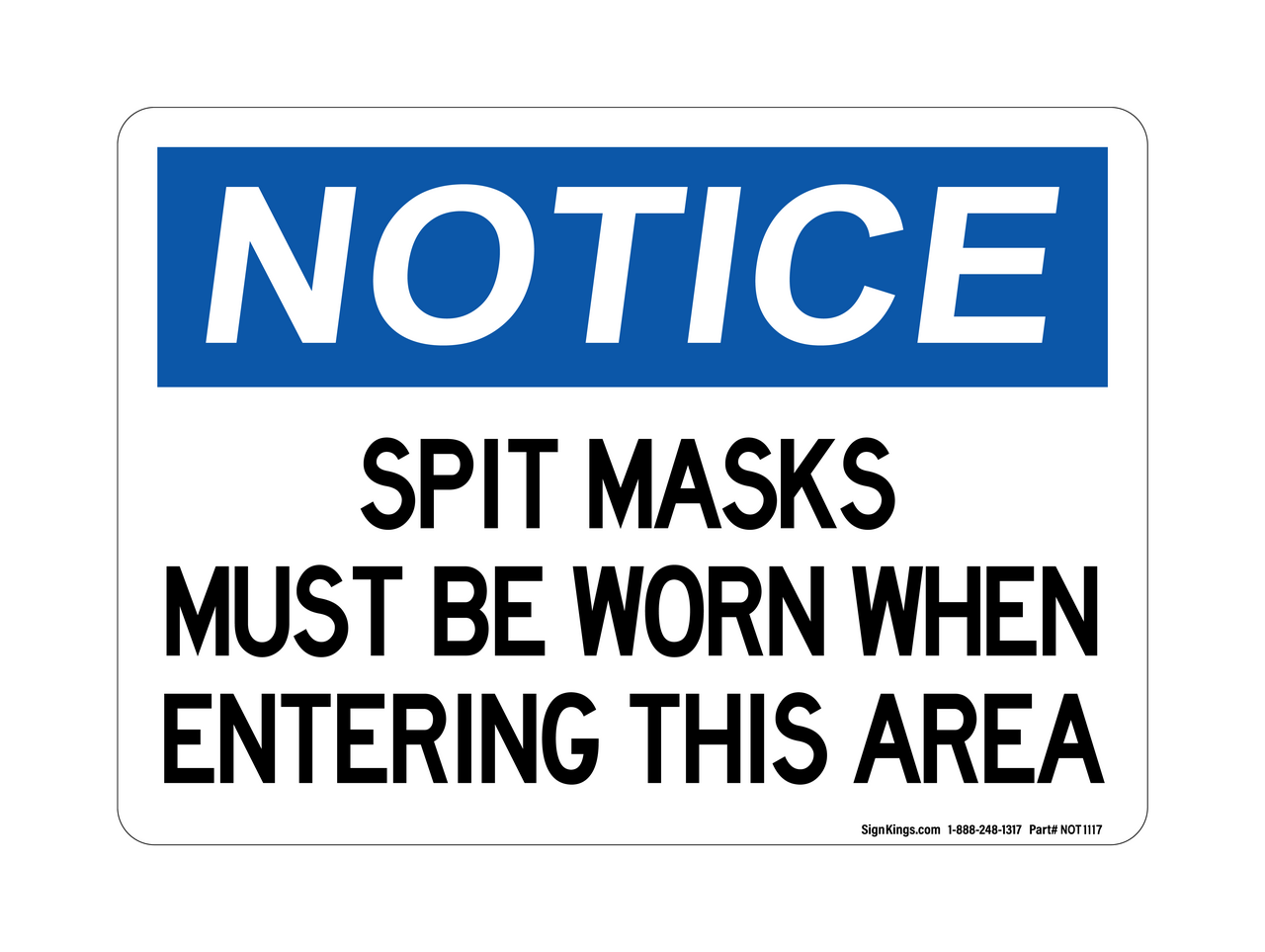 "Spit Masks Must Be Worn When Entering This Area" Notice Sign (Part#: NOT1117)